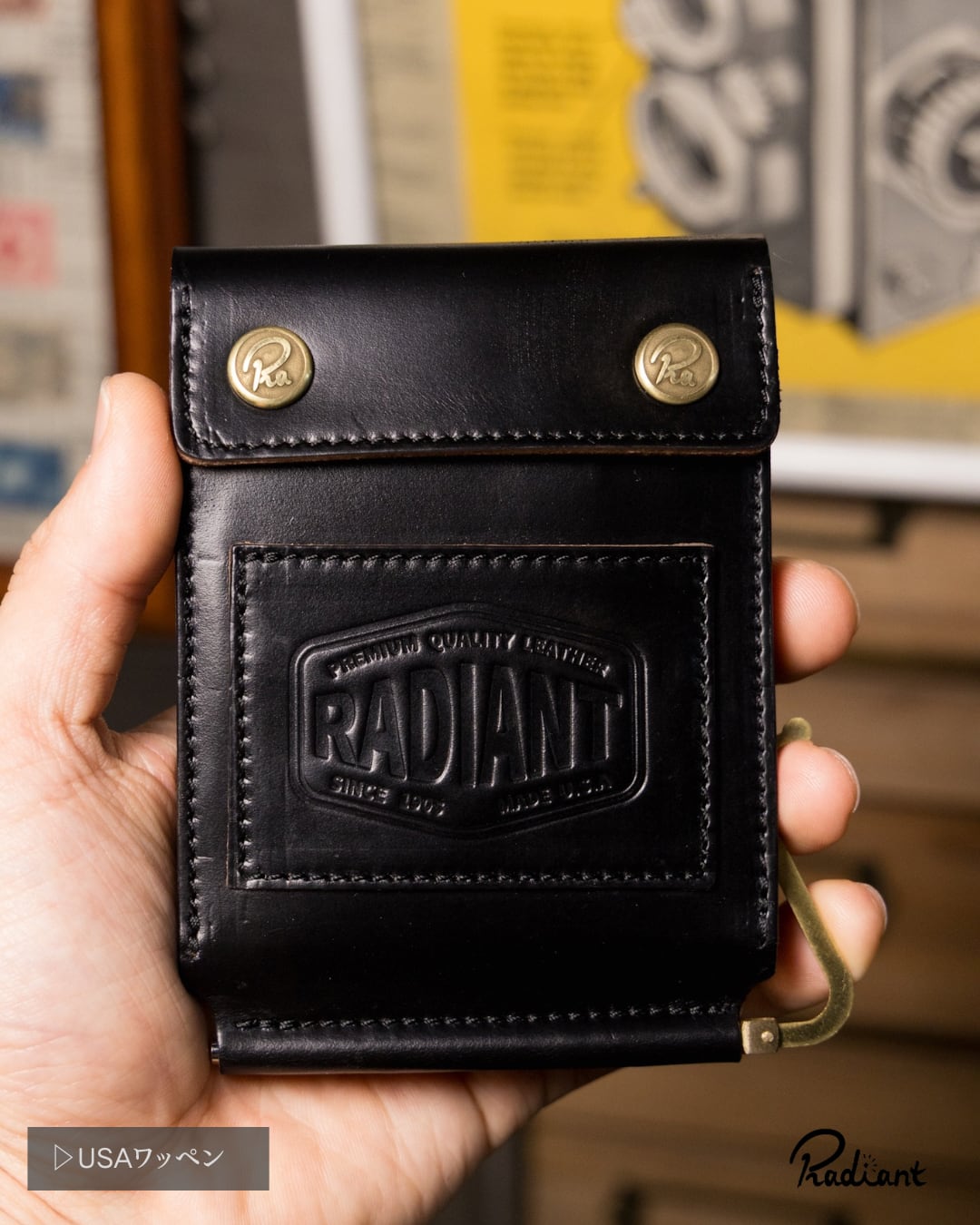 イタリアンレザーでご好評いただいているradiant製money clip。